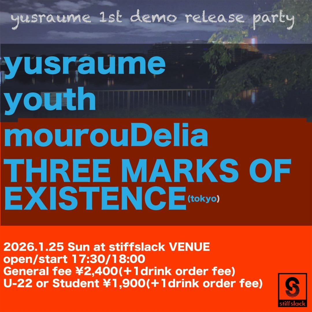 強烈な印象を与え続けた名古屋発ジャパニーズEMO/オルタナギターロックの新進気鋭"yusraume"によるメンバー所属の部室にて録音、ミックスされたDIYミニアルバム"1st demo"のリリースパーティが開催!!